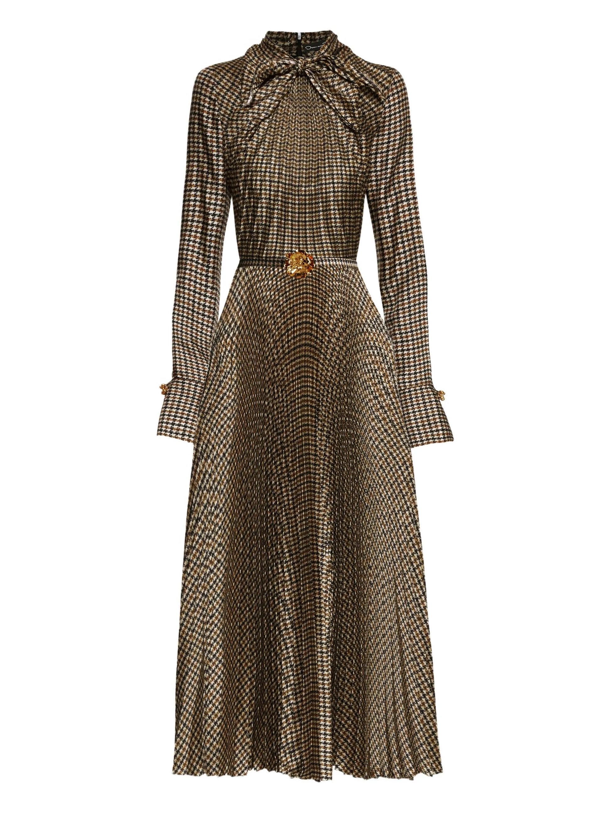 houndstooth pleated midi dress